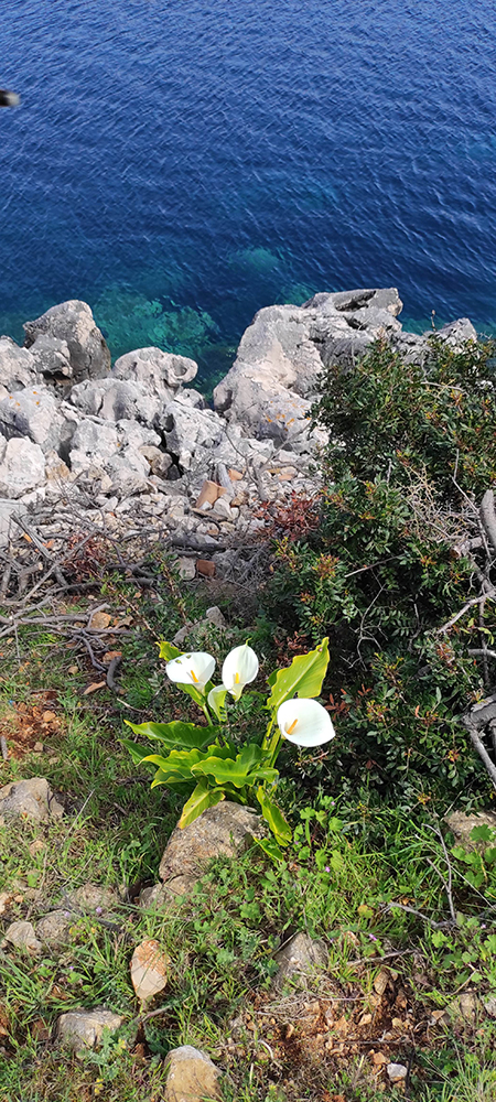 Ilovik significa Asinello ma è denominata “isola dei fiori” per la sua lussureggiante vegetazione. Ti consiglio la verde passeggiata lungomare che guarda all’isola di San Pietro. Vi scorgerete aloe, e piante grasse dai fiori viola che altro non sono che Carpobrotus edulis o fico degli Ottentotti o Unghia di strega. Bellissimi gli eucalipto!