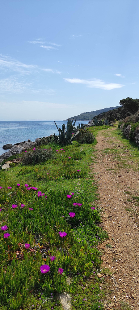 Il paesaggio è un continuo giardino di roccia con arbusti tipici della macchia mediterranea ma presenta tratti boschivi di pini marini. Il mio boschetto preferito è il Cikat che si affaccia su un paio di baie dall’acqua cristallina.